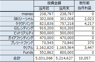 毎月分配の事業者が少なくなってきたので、単月の数字にはあまり意味は無いですが、今月の税引き前利益は1万円となりました。